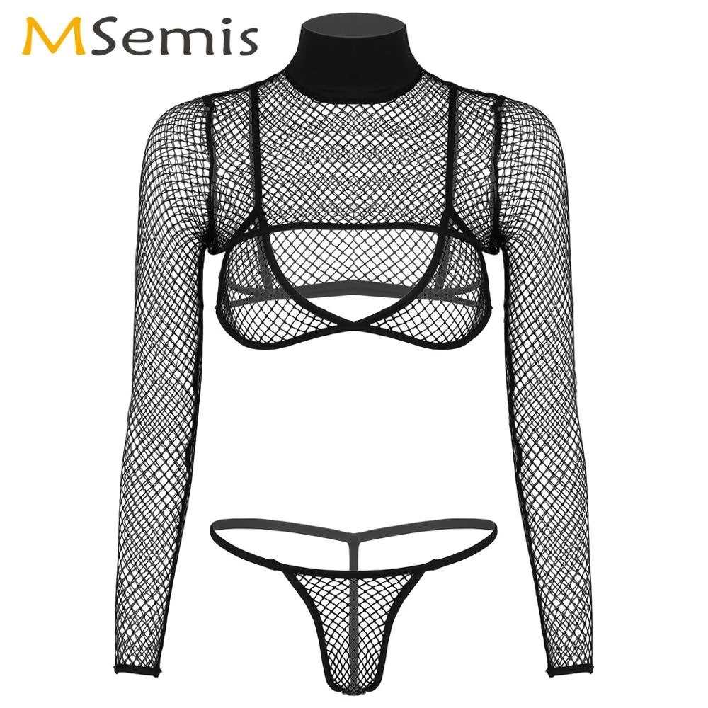 Womens Porno Stripper Outfit Transparent Pole Dance Fishnet Lingerie Set Clubwear Long Sleeve Shrug Tee With Triangle Bra Briefs Lingerie Sets Aliexpress