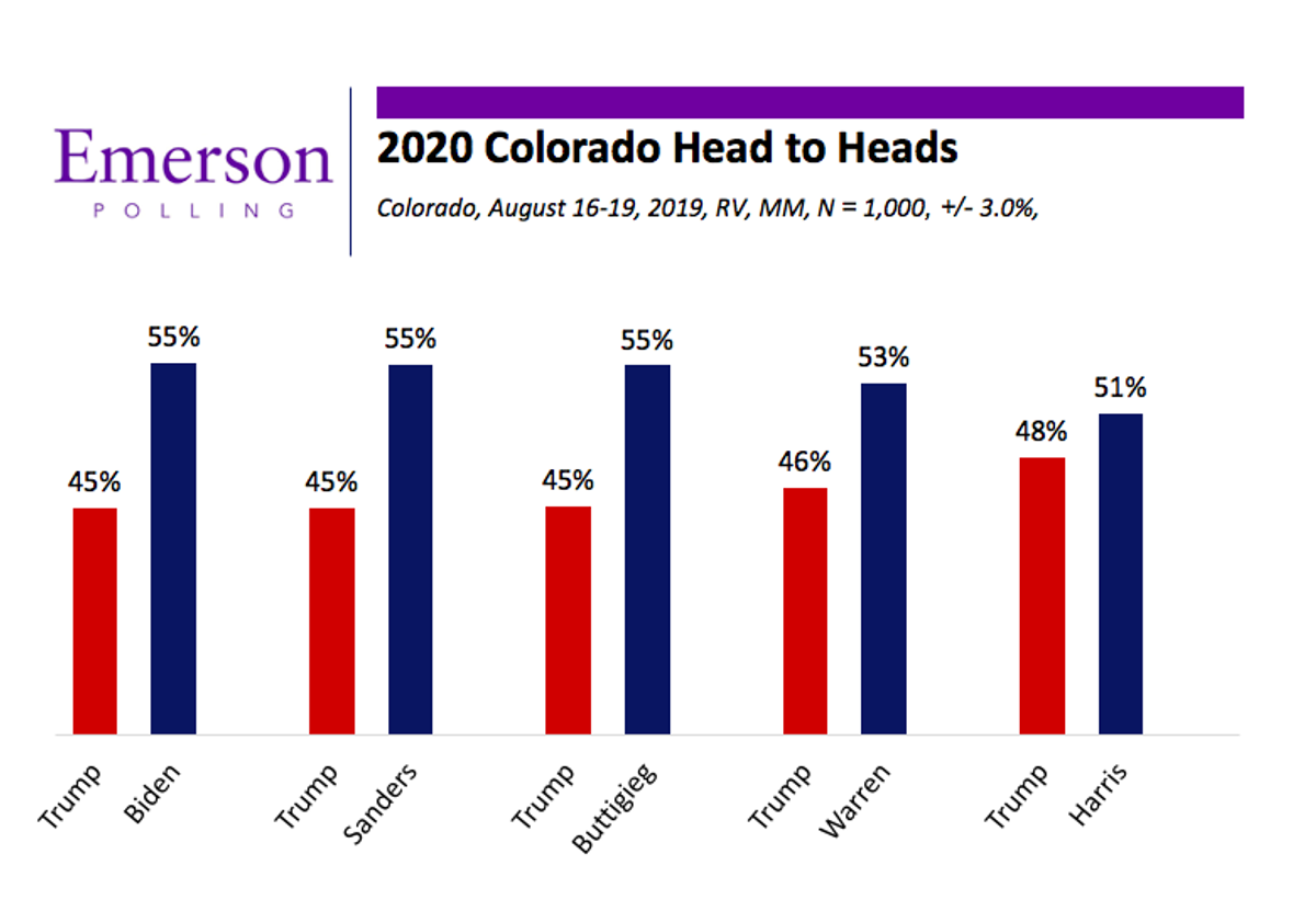 Emerson Polling Colorado 2020 Sanders Biden And Warren Lead Democratic Field Democrats Look To Gain Senate Seat