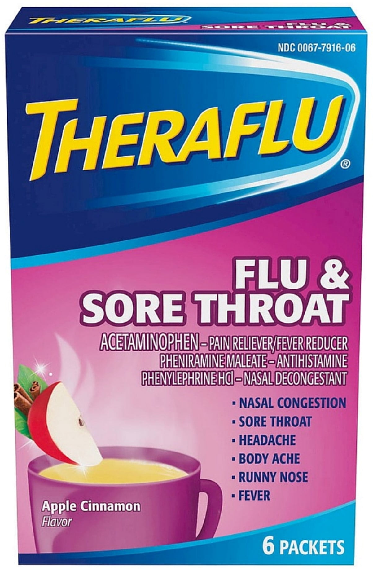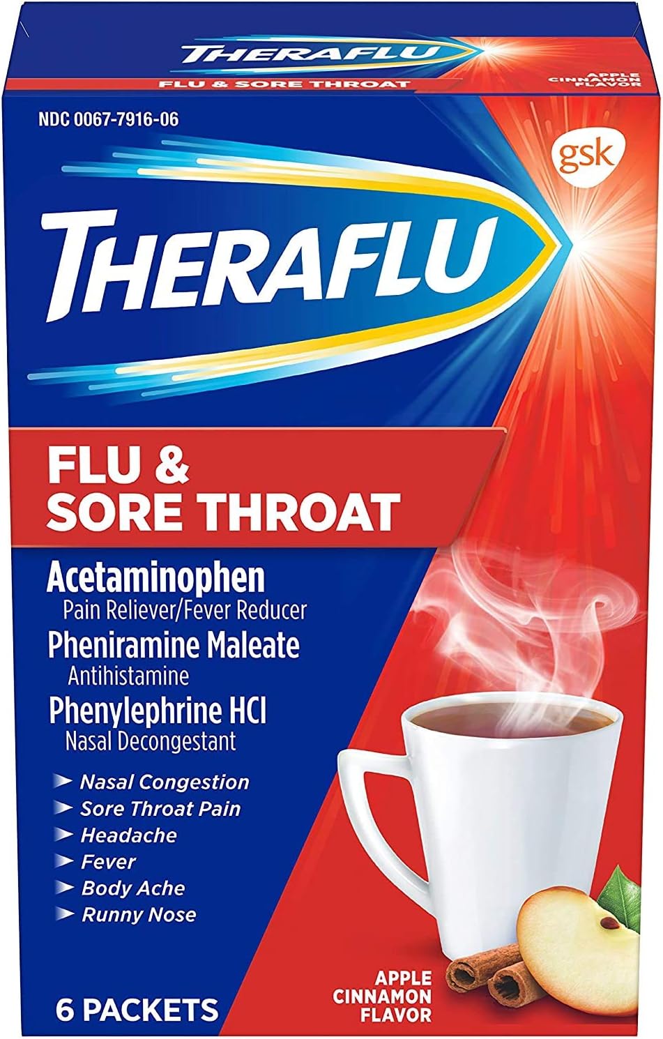 Amazon Com Theraflu Flu And Sore Throat Hot Liquid Powder Apple Cinnamon Flavor For Relief From Nasal Congestion Runny Nose And Headache 6 Count Box Health Personal Care