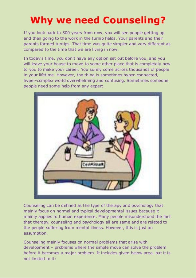 Wondering Why People Need Counseling. If you live with depression anxiety or something more severe such as bipolar. Many translated example sentences containing in need of counseling French-English dictionary and search engine for French translations.