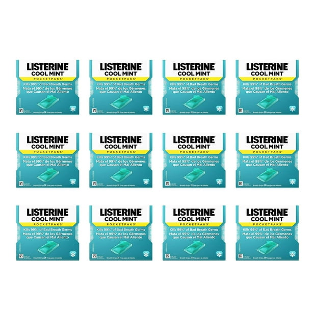 Listerine Cool Mint Pocketpaks Breath Strips Kills Bad Breath Germs 24 Strip Pack 12 Pack Walmart Com Walmart Com