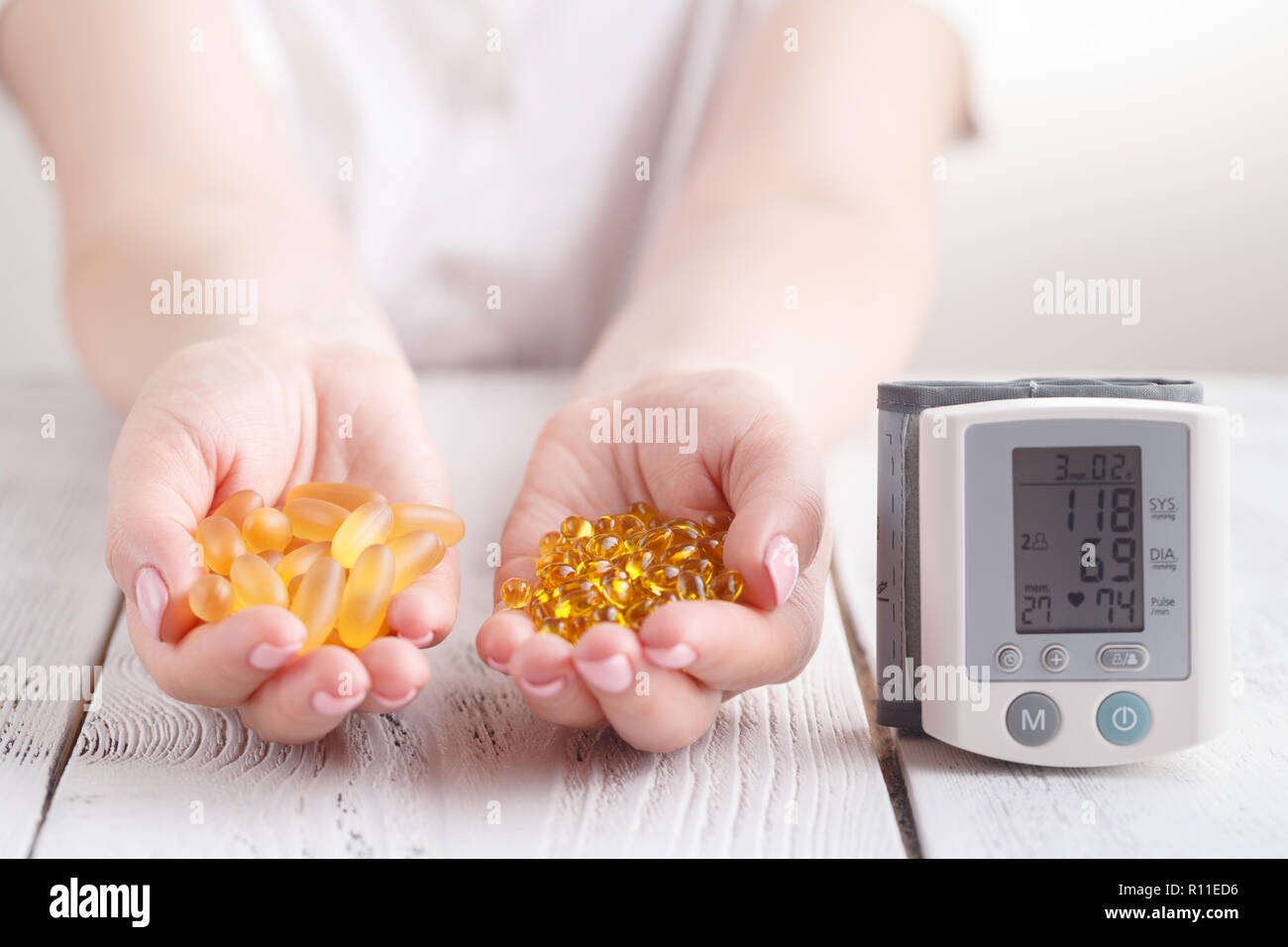 Prevent High Blood Pressure Capsules With Fish Oil And Vitamin E Protection Against Heart Disease Stock Photo Alamy