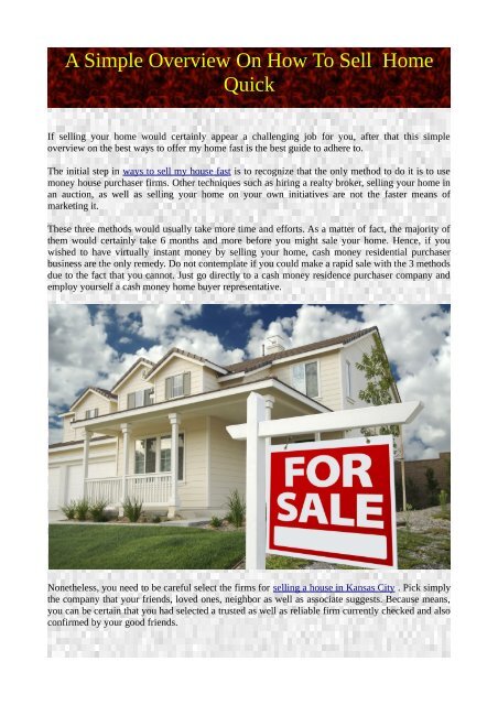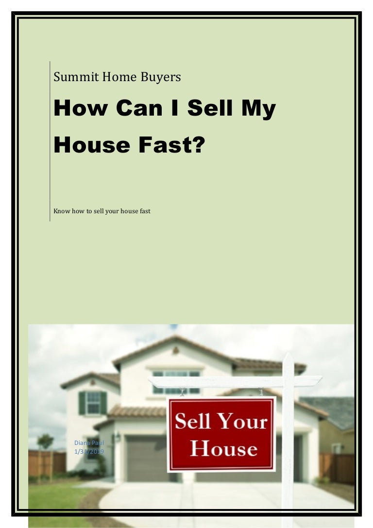 How to sell a house 1. This is the fastest way to turn your house into cash. When you need to sell a house fast listing it with a real estate agent just wont cut it.