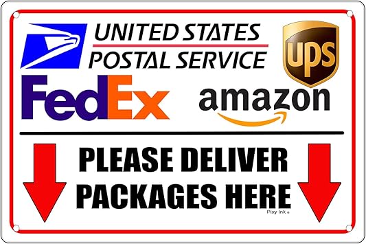 Amazon Com Please Deliver Packages Here Arrows Down Metal Sign Ups Fedex 12x18 Inches Office Products