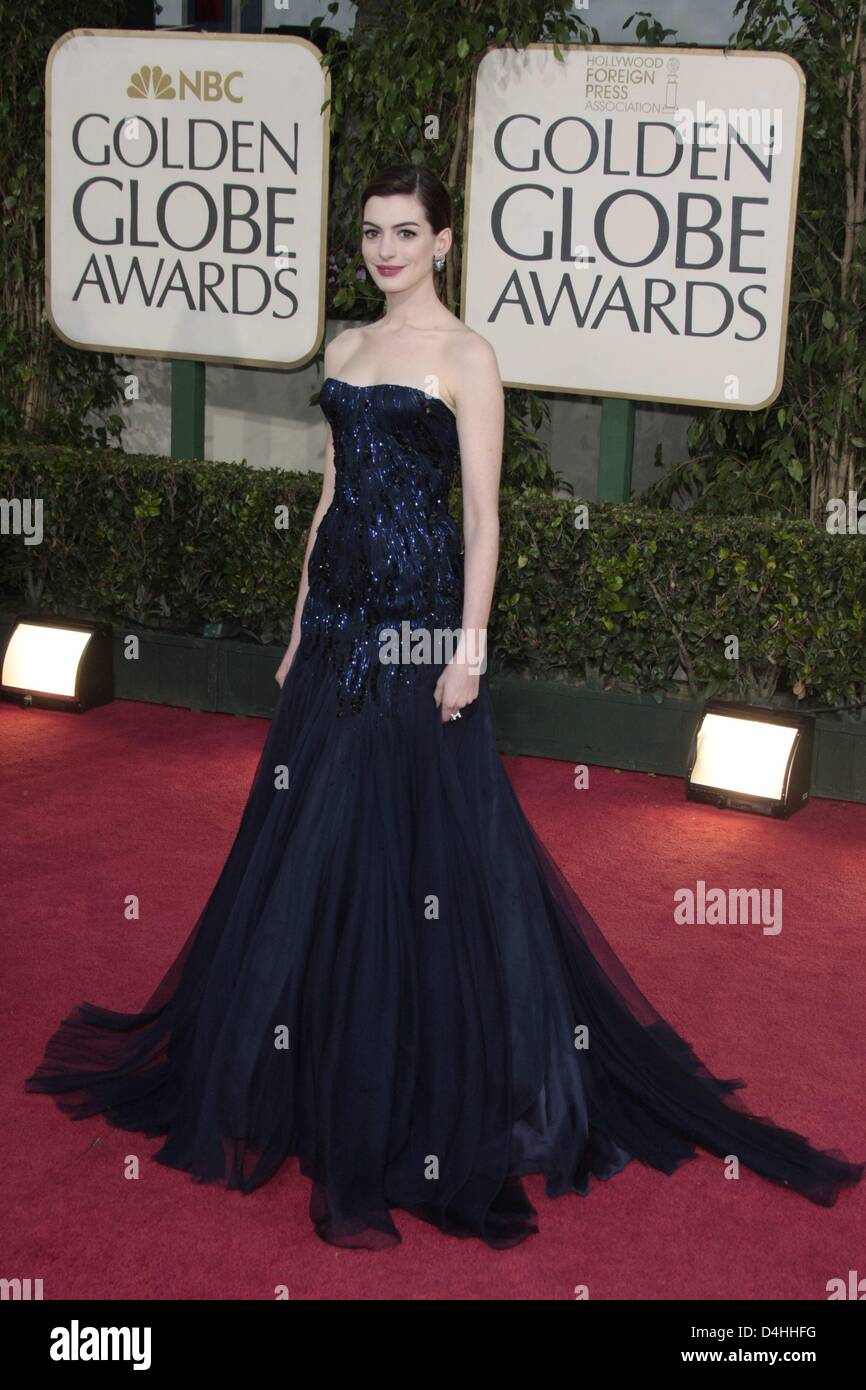 Actress Anne Hathaway Arrives For The 66th Annual Golden Globe Awards Stock Photo Alamy