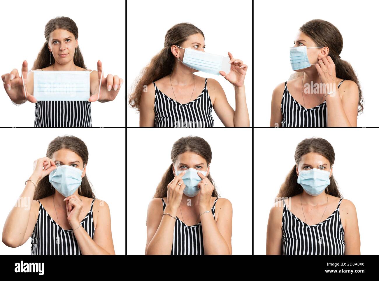 Tutorial Concept How To Wear Medical Or Surgical Disposable Mask Correctly To Prevent Sars Covid19 Flu Virus Influenza Contamination Pandemic With Adu Stock Photo Alamy