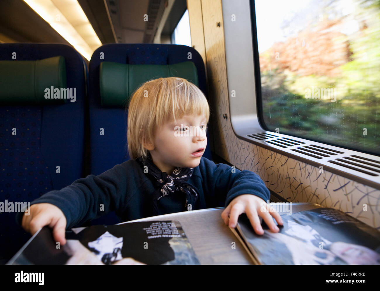 Little Boy Travel Alone In The Train Stock Photo Alamy